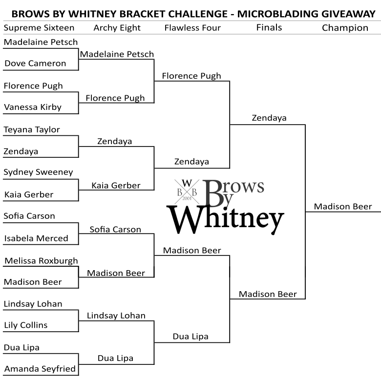 The Brows by Whitney Bracket Challenge is back for an eighth year! The winning participant will win: FREE MICROBLADING or a YEARLY TOUCH-UP*